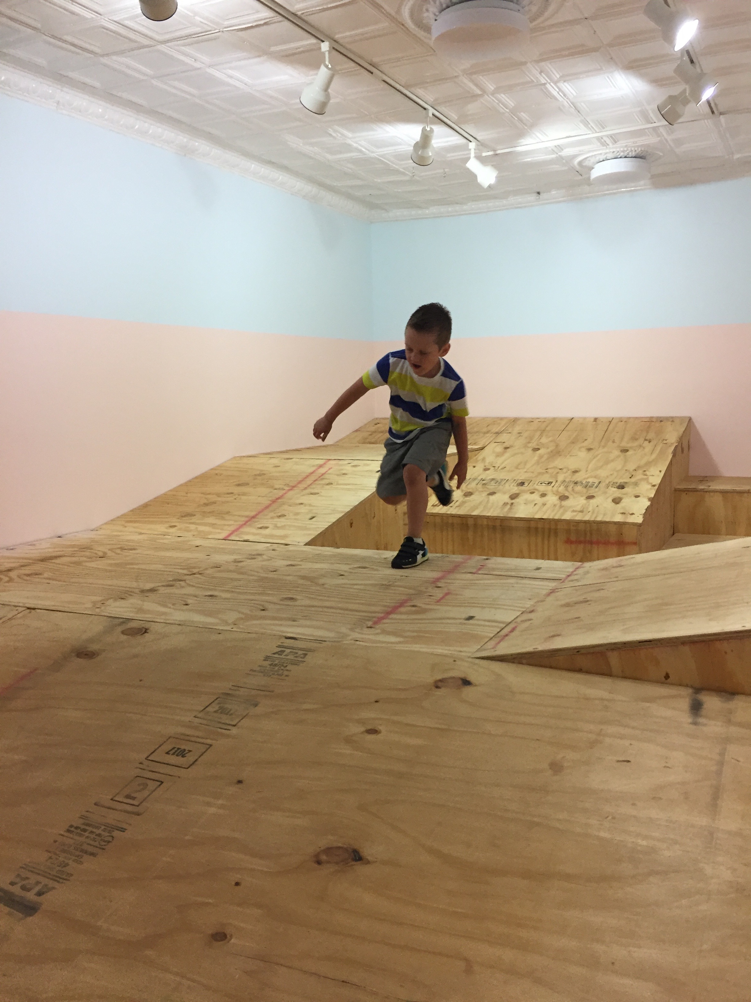 Surface Shift was an architectural intervention which physically altered the topography of the gallery at Open Space in Baltimore, MD. Visitors were invited to walk on, sit down, jump around, climb over, and lay down in this immersive piece. Over the course of the exhibition the installation hosted an event series titled Site Horizon featuring an Experimental Music Showcase and a Panel Discussion on Art and Design.
