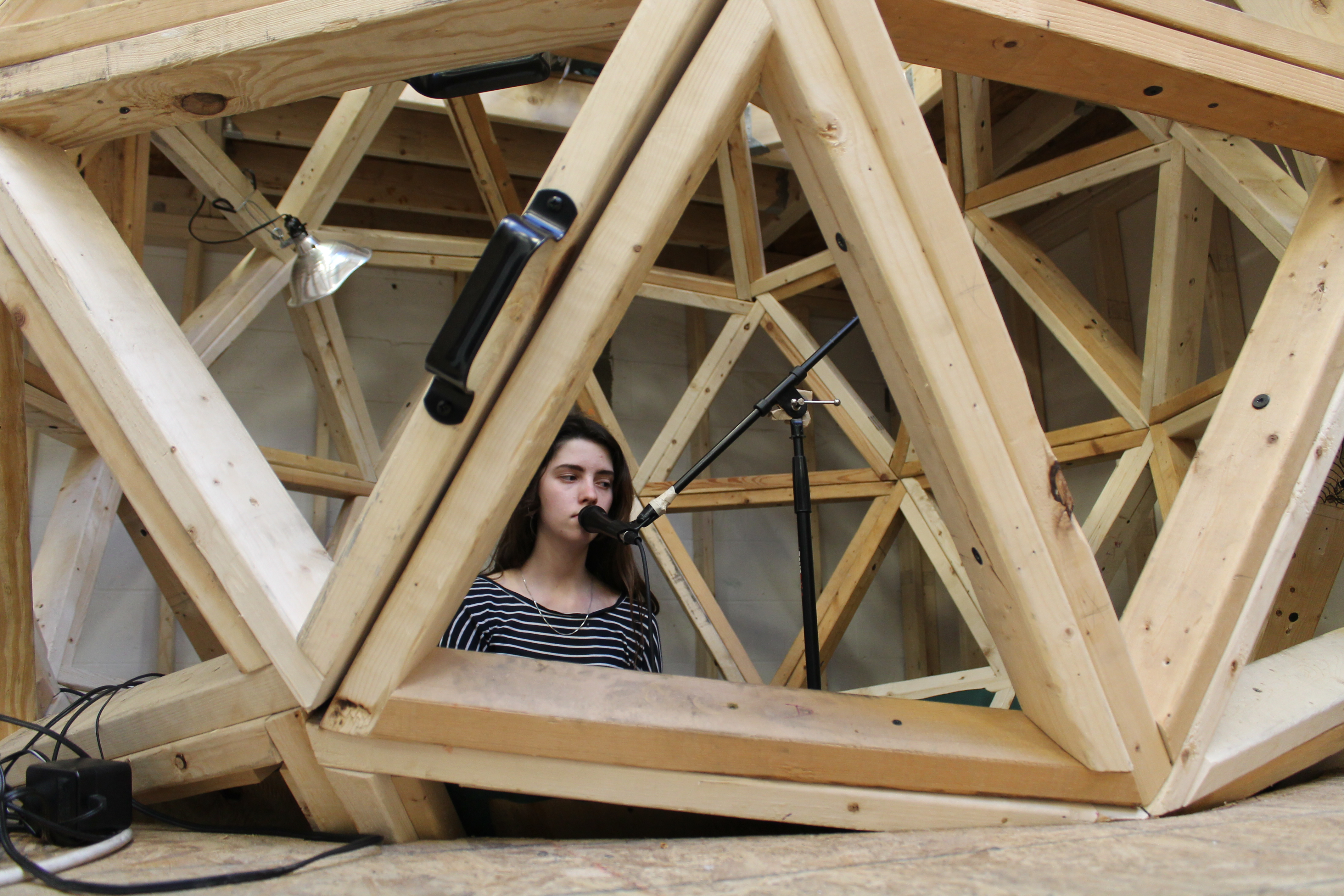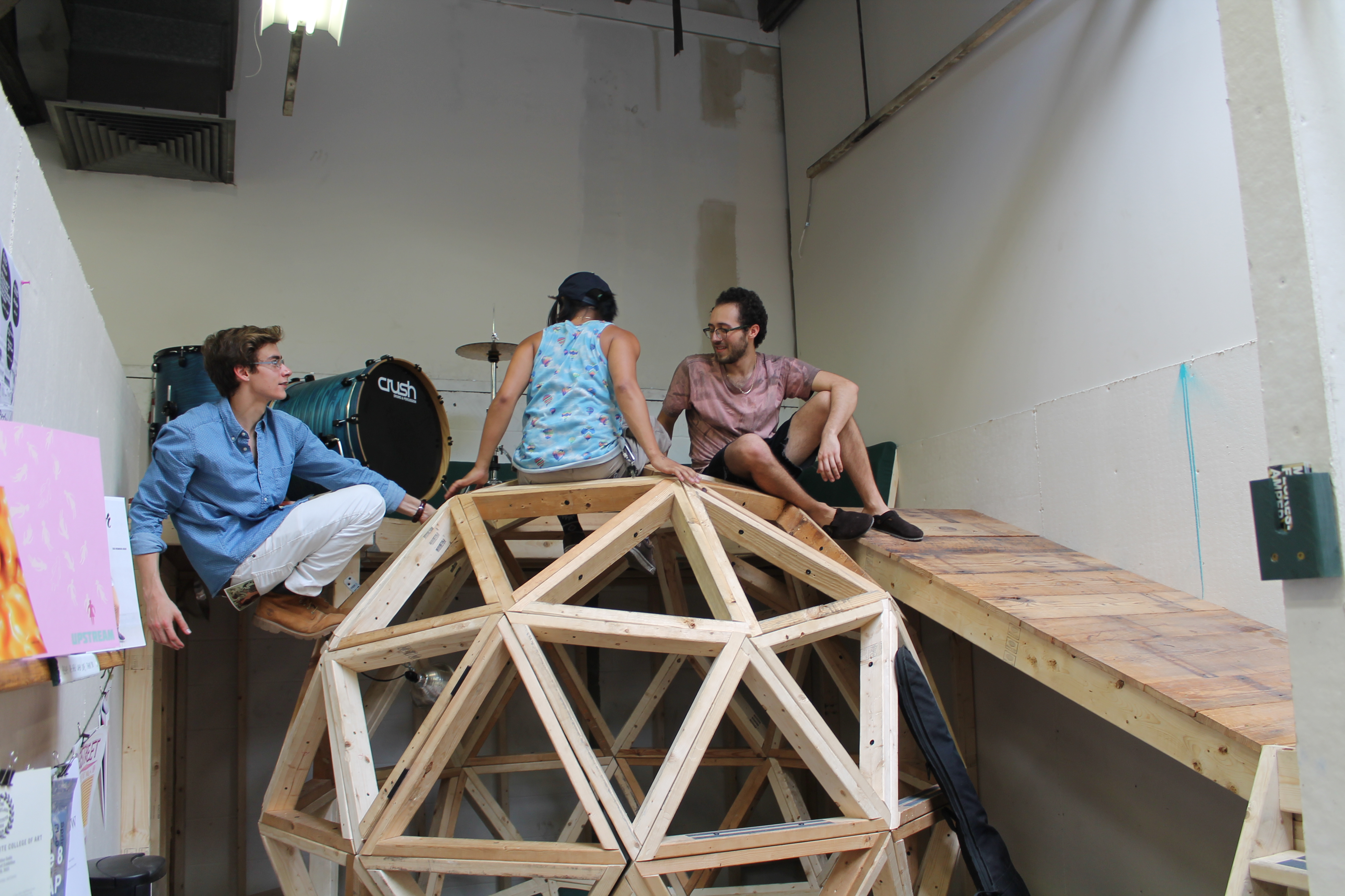 Crater! was featured as an Anchor Project for Artscape 2016 in Baltimore, MD. The 50’ diameter sculpture was built from plywood and framing lumber, and its concave deck sloping 4’ off the ground created a gathering space that invited visitor to climb on and explore new vantages. The geodesic meteor that crash landed at the crater’s center lit up the nights.