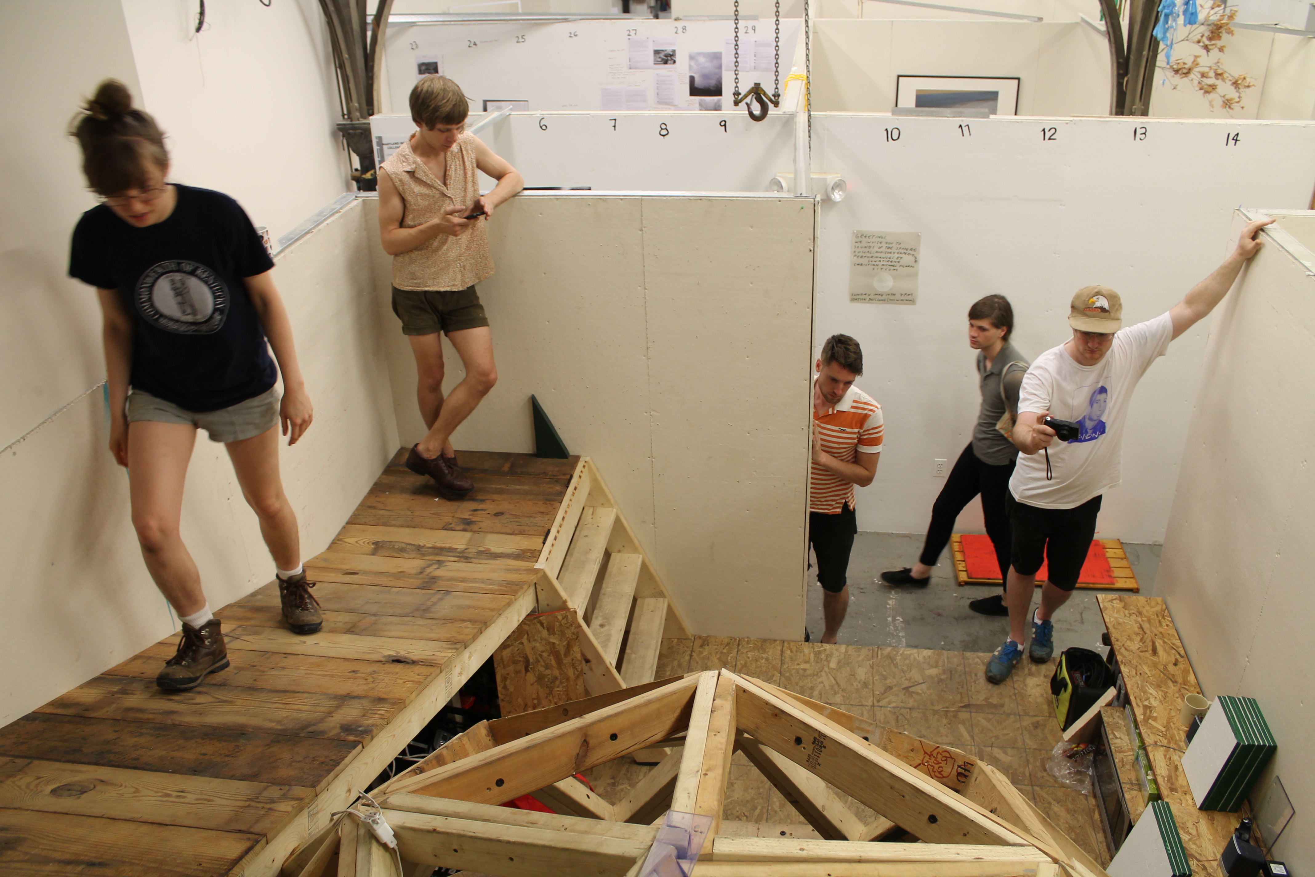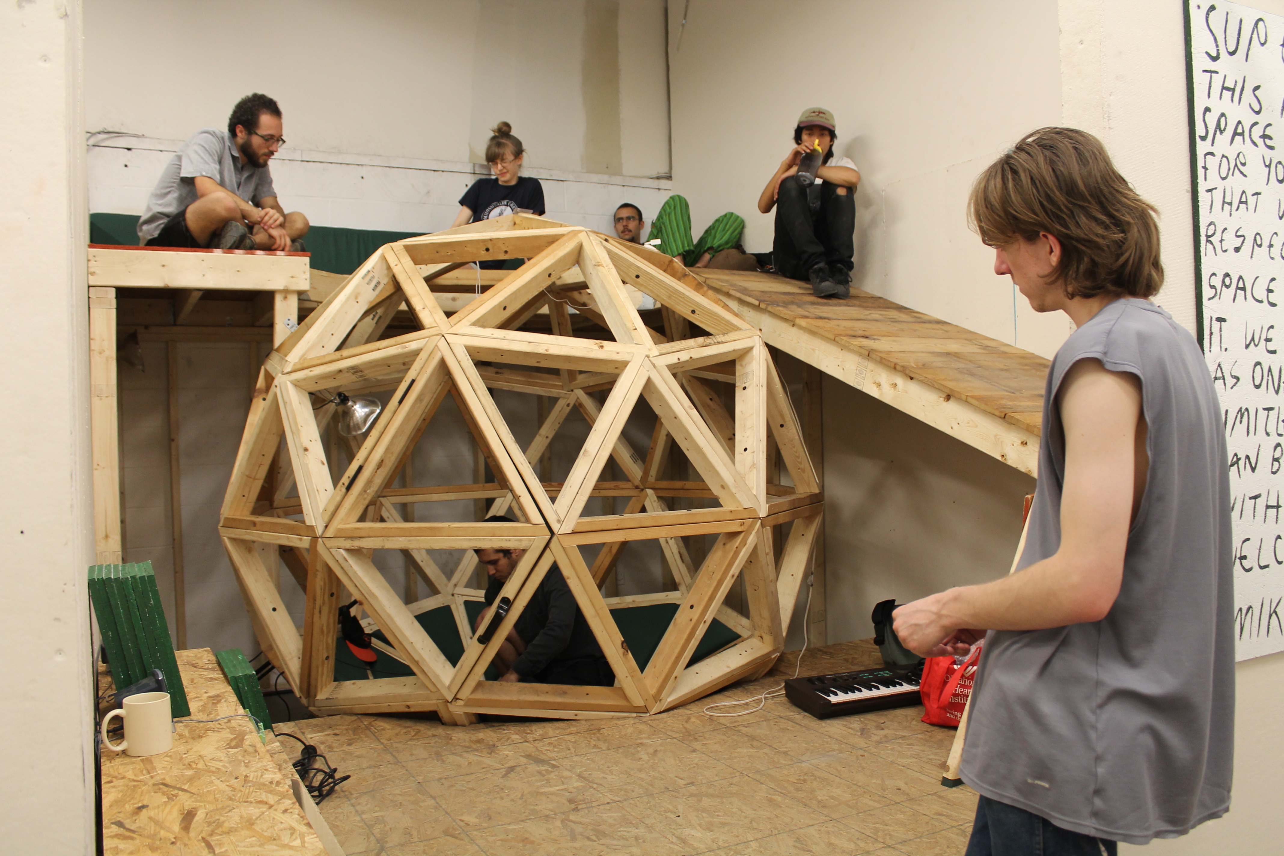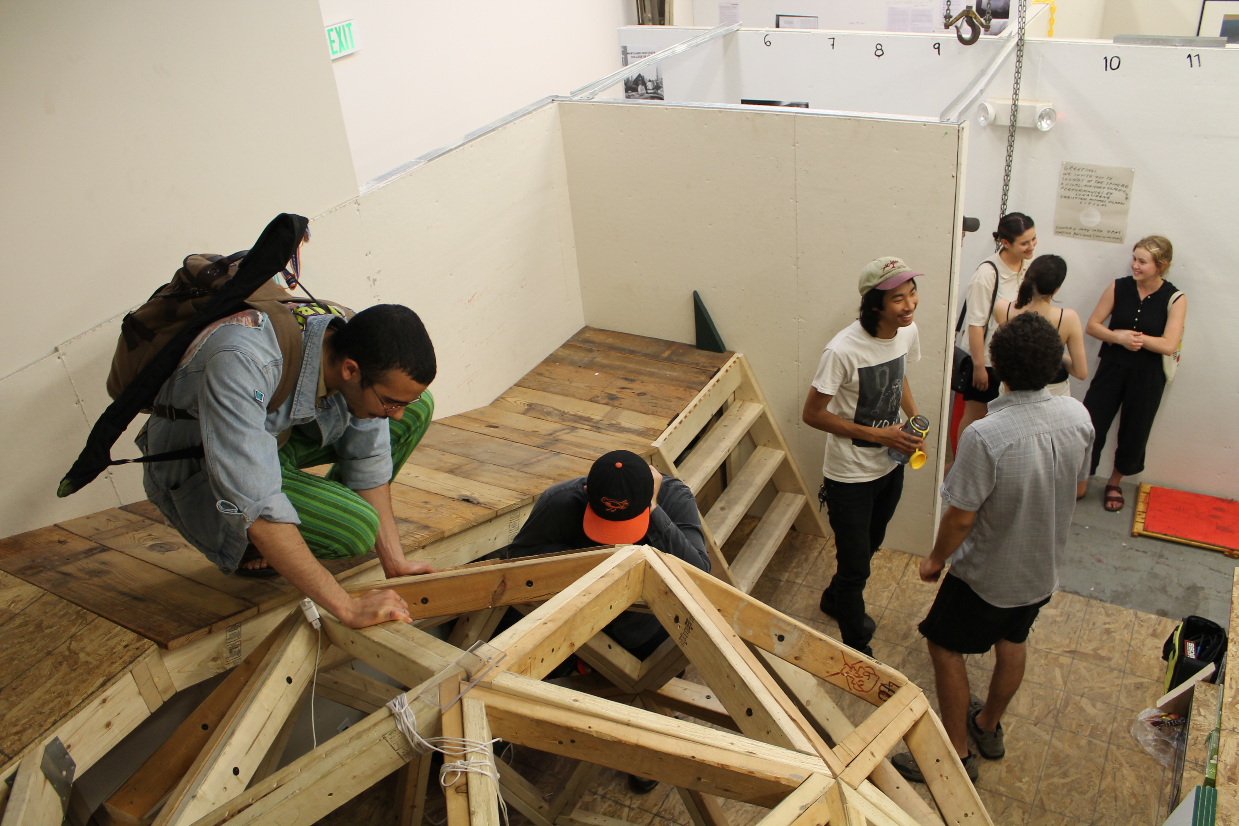 Art installation/multi-use/performance venue/hangout spot in the Interdisciplinary Sculpture Studios in the Maryland Institute College of Art Station Building. Hosted music performance, jam sessions, student publication library, and an evening of student film screenings. In collaboration with Andy Kim and special thanks to John Robb.