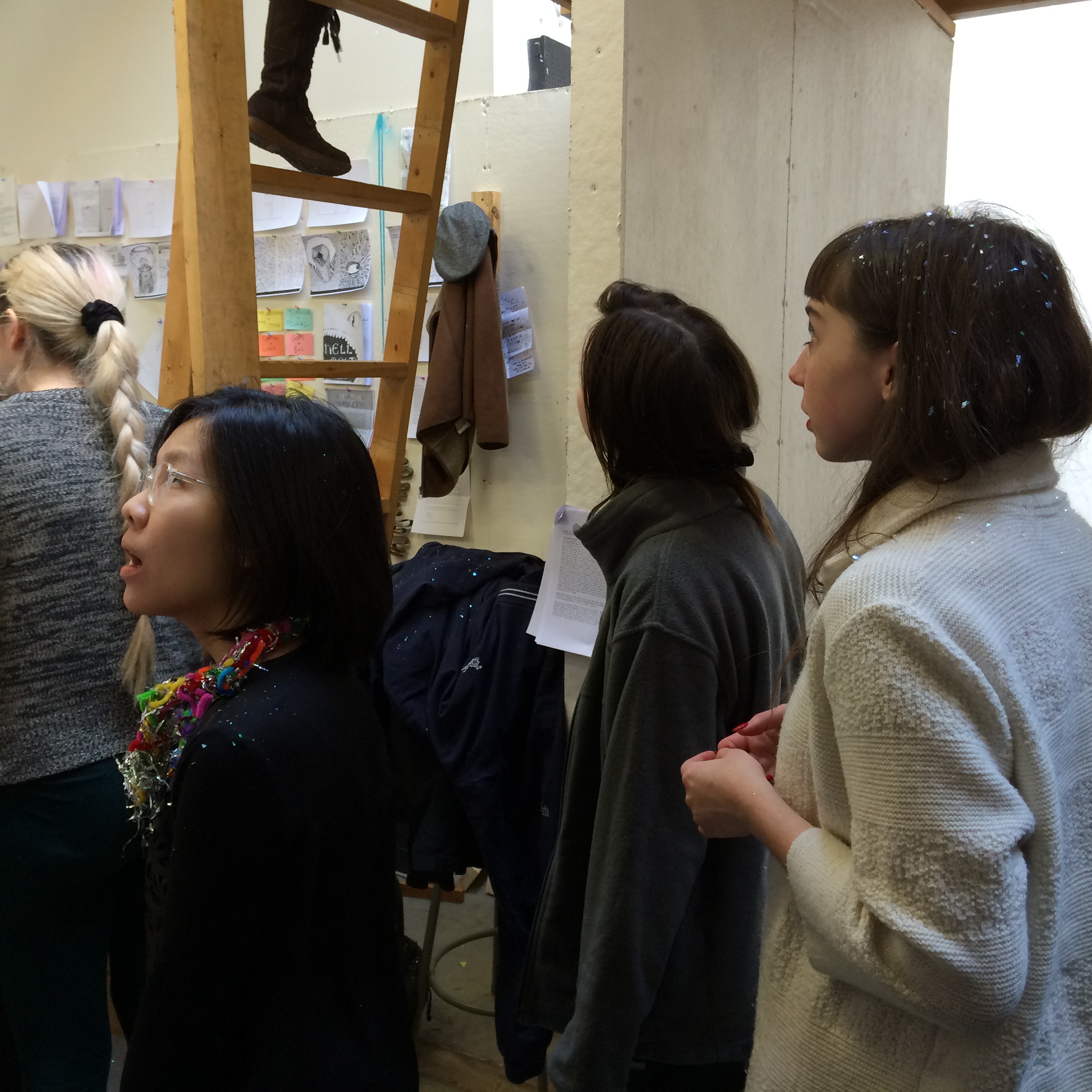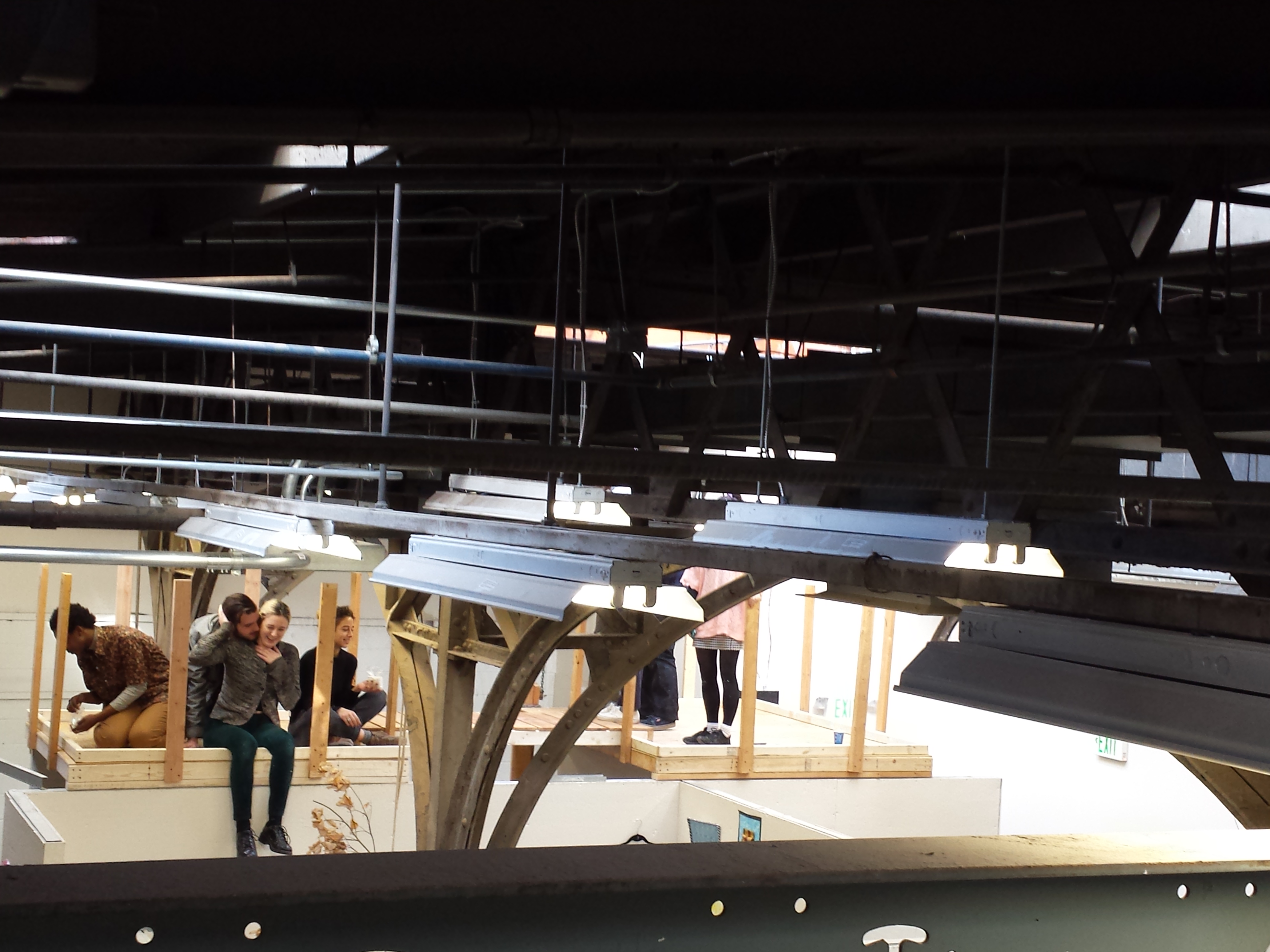 I built a wooden deck on top of the divider walls at the MICA Station Building’s senior sculpture studios and hosted a winter wonderland get together with live music, snow, and hot chocolate.